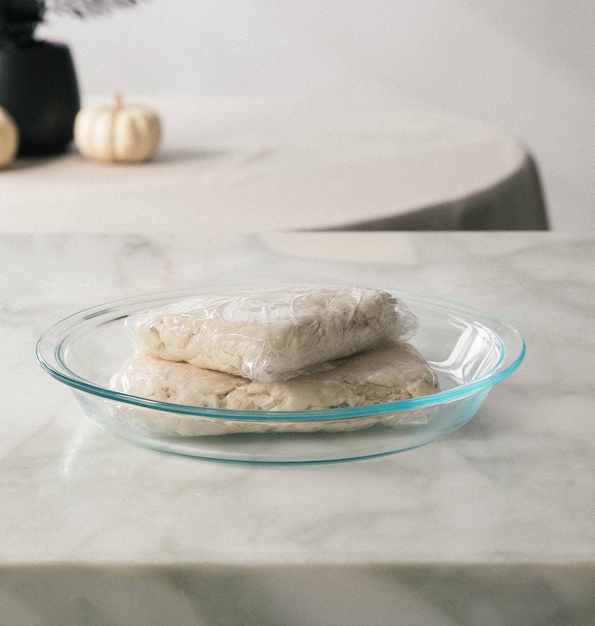 - Divide the dough, forming two discs. Wrap the discs in plastic wrap and transfer to the refrigerator to chill for at least 1 hour, ideally overnight.