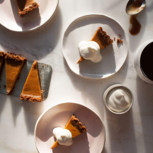 This butterscotch pumpkin pie has delicious caramel notes, the perfect silky smooth texture and is the ideal pumpkin pie for your holiday table. Serve this alongside this Caramelized Shallot Dip, Creamy Baked Macaroni and Cheese and perfect Cranberry Sauce.