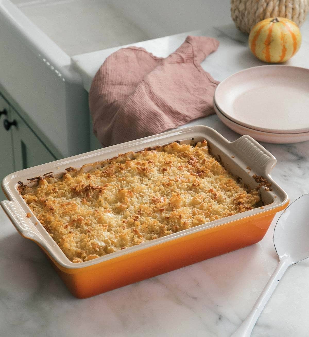 - Breadcrumbs – The buttery toasted breadcrumbs make the perfect crispy topping.
