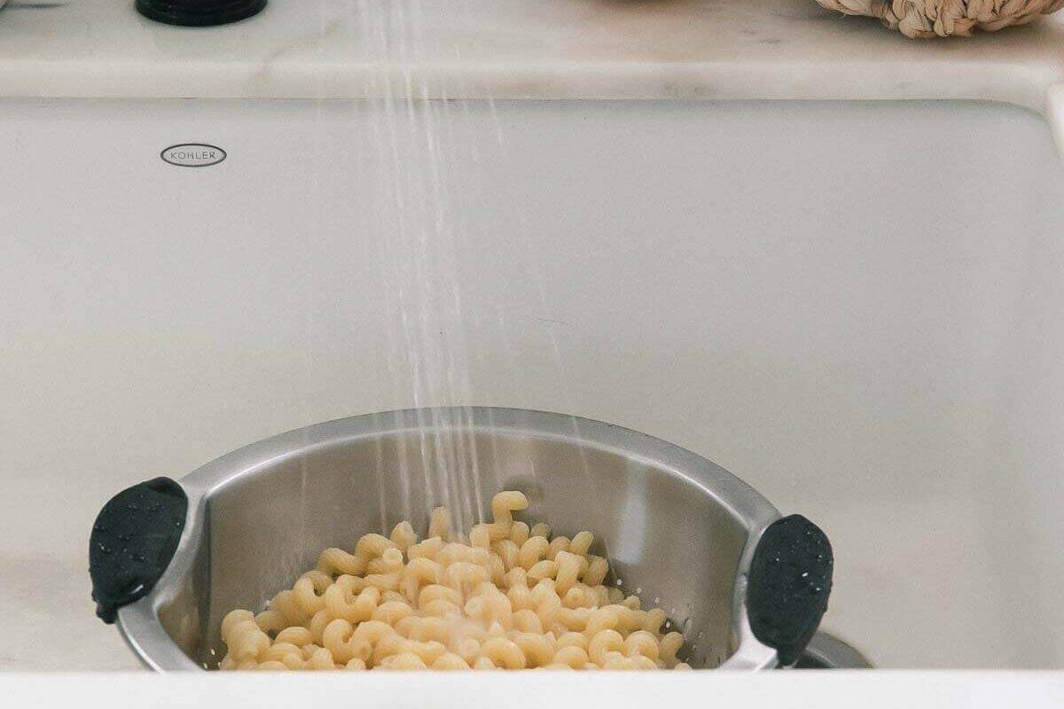 - Rinse the cooked pasta under cold water to get rid of some of the excess starch.