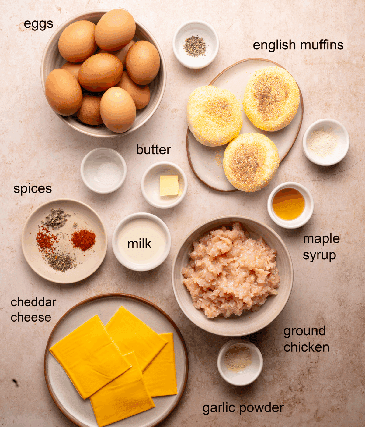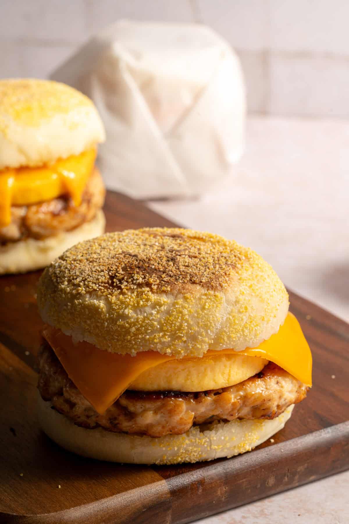 - Assemble the sandwiches. Add the patty, egg, cheese and top with the second half of English muffin.