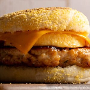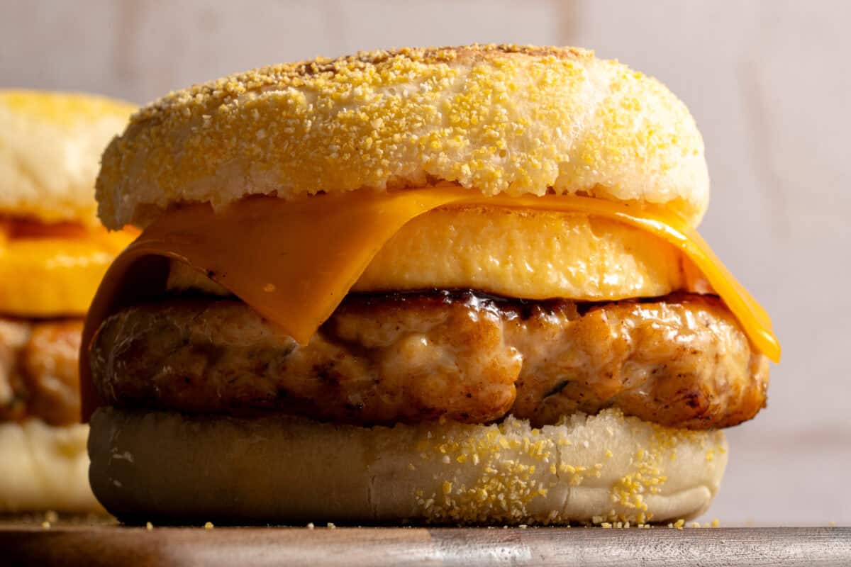 These Freezer Breakfast Sandwiches are the thing to meal prep for busy mornings. These are filled with homemade maple sage chicken sausage patties, light and fluffy egg and a slice of cheddar cheese. Reheat these in the oven, microwave or airfryer for easy mornings.