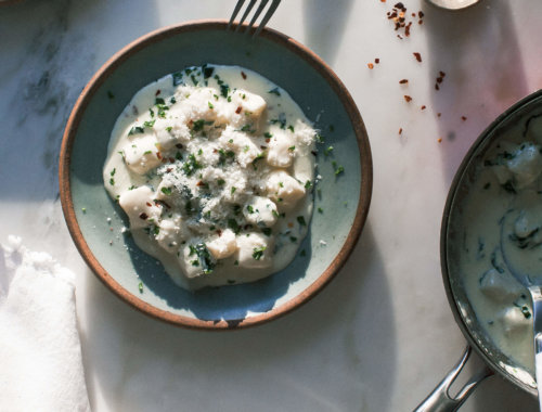 There’s a little roux action, half & half (because we all have that in the fridge) and the goat cheese. Delicious. Rich.