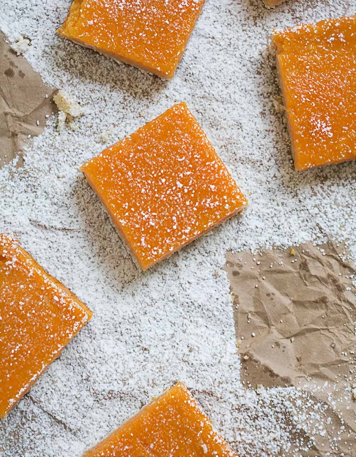 Papaya bars are modeled after lemon bars. There is a base of shortbread crust that is salty and buttery. The crust is topped with a tropical custard made with papaya puree.