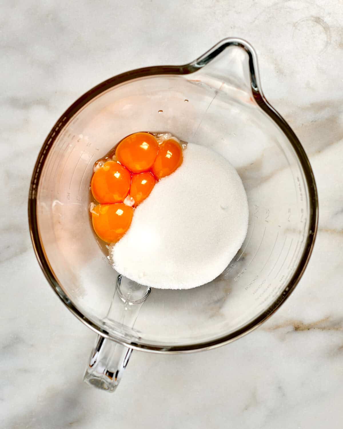 - Beat the egg yolks. Just add them to the mixing bowl with the remaining sugar and beat until pale and fluffy.