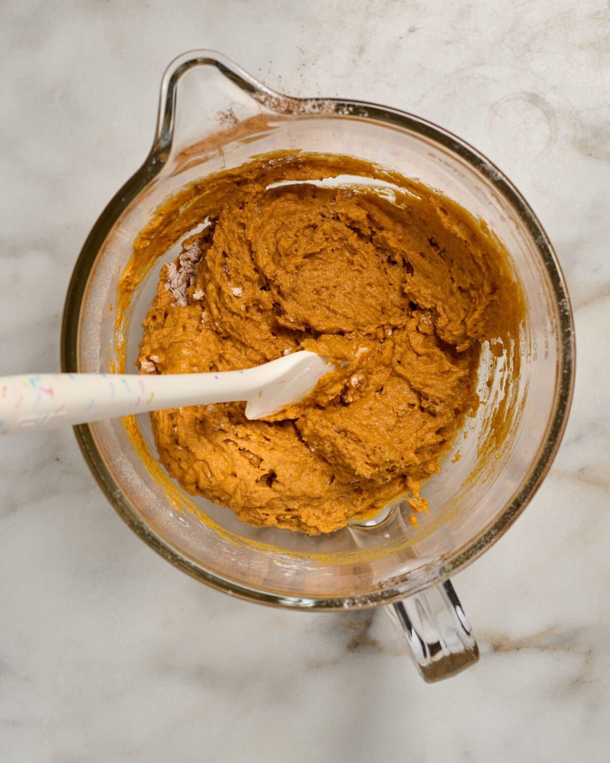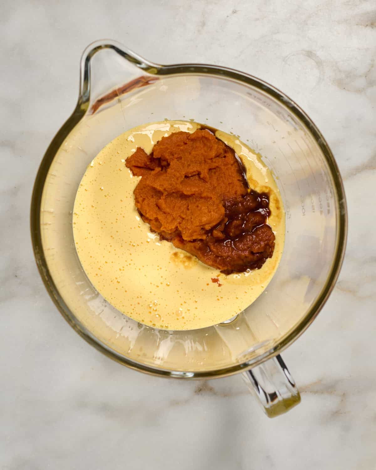 3. Add the pumpkin. Mix it in with the vanilla just until combined.