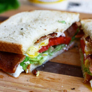 If you’ve ever watched the movie Spanglish, you’ll remember this sandwich. It’s a famous sandwich Adam Sandler’s character makes after returning from work one late night. It has crispy pieces of bacon, lettuce, tomato, a runny egg and melty cheese. Absolutely delicious!